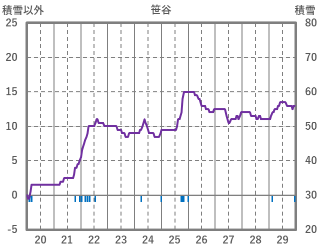 | 日 | 時 | 気温 | 降水 | 風向/風速 | 日照 | 積雪 | 降雪 |