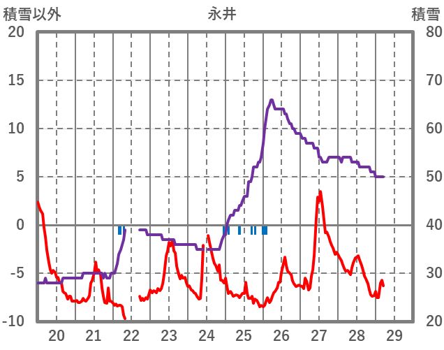 | 日 | 時 | 気温 | 降水 | 風向/風速 | 日照 | 積雪 | 降雪 |