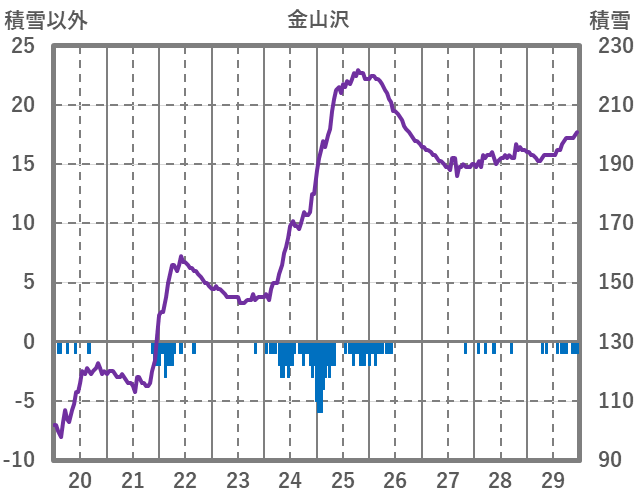 | 日 | 時 | 気温 | 降水 | 風向/風速 | 日照 | 積雪 | 降雪 |