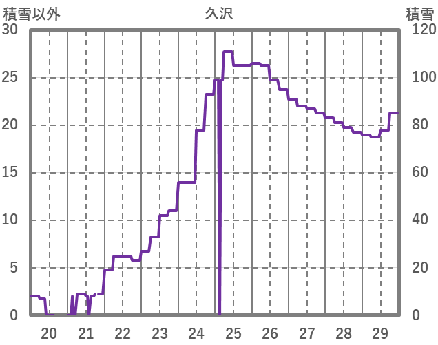 | 日 | 時 | 気温 | 降水 | 風向/風速 | 日照 | 積雪 | 降雪 |