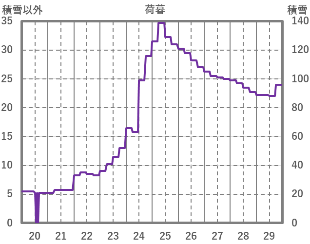 | 日 | 時 | 気温 | 降水 | 風向/風速 | 日照 | 積雪 | 降雪 |