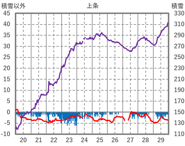 | 日 | 時 | 気温 | 降水 | 風向/風速 | 日照 | 積雪 | 降雪 |