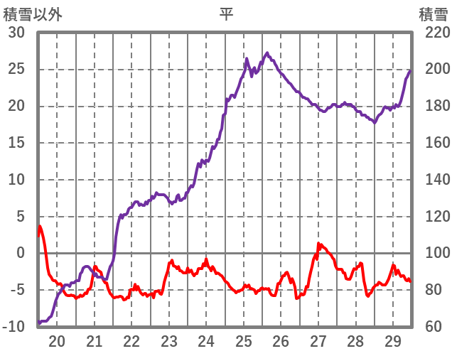 | 日 | 時 | 気温 | 降水 | 風向/風速 | 日照 | 積雪 | 降雪 |