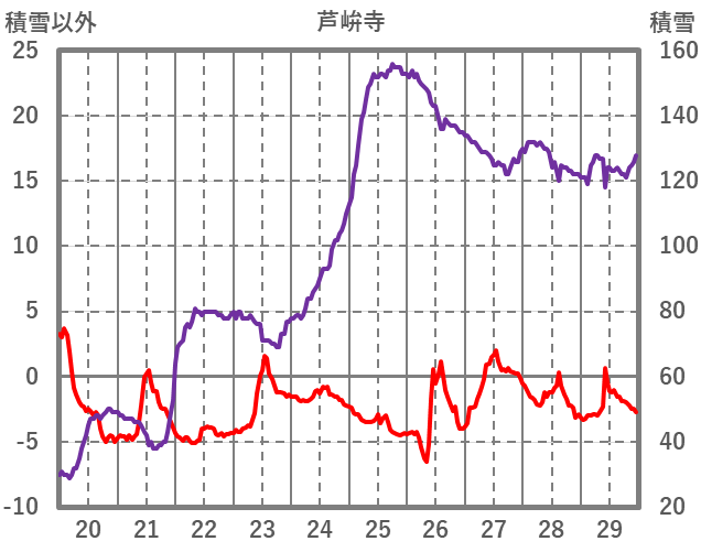 | 日 | 時 | 気温 | 降水 | 風向/風速 | 日照 | 積雪 | 降雪 |