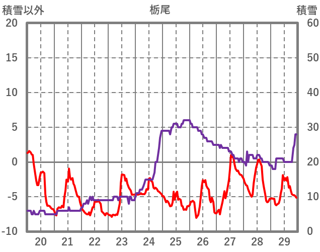 | 日 | 時 | 気温 | 降水 | 風向/風速 | 日照 | 積雪 | 降雪 |