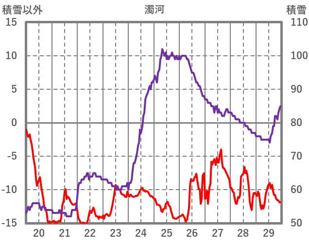 | 日 | 時 | 気温 | 降水 | 風向/風速 | 日照 | 積雪 | 降雪 |