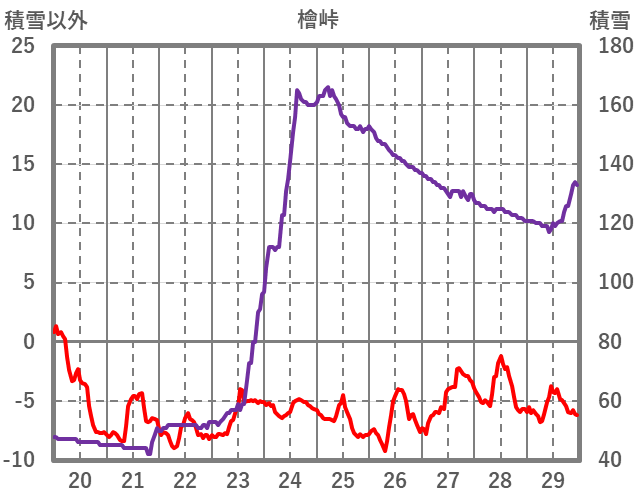 | 日 | 時 | 気温 | 降水 | 風向/風速 | 日照 | 積雪 | 降雪 |