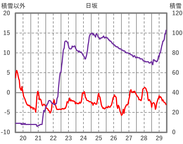 | 日 | 時 | 気温 | 降水 | 風向/風速 | 日照 | 積雪 | 降雪 |