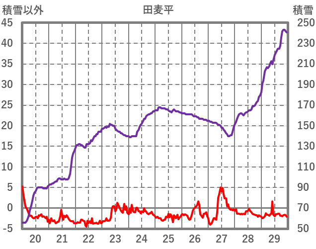| 日 | 時 | 気温 | 降水 | 風向/風速 | 日照 | 積雪 | 降雪 |