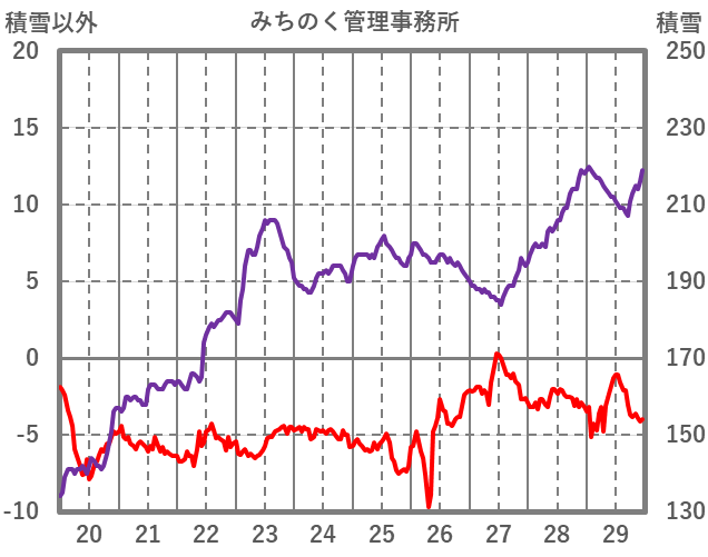 | 日 | 時 | 気温 | 降水 | 風向/風速 | 日照 | 積雪 | 降雪 |