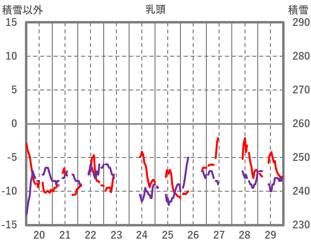 | 日 | 時 | 気温 | 降水 | 風向/風速 | 日照 | 積雪 | 降雪 |