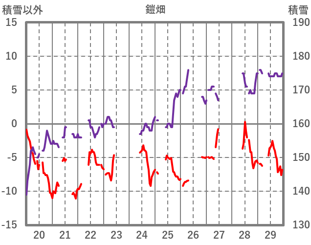 | 日 | 時 | 気温 | 降水 | 風向/風速 | 日照 | 積雪 | 降雪 |