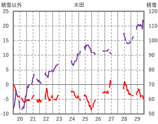 | 日 | 時 | 気温 | 降水 | 風向/風速 | 日照 | 積雪 | 降雪 |