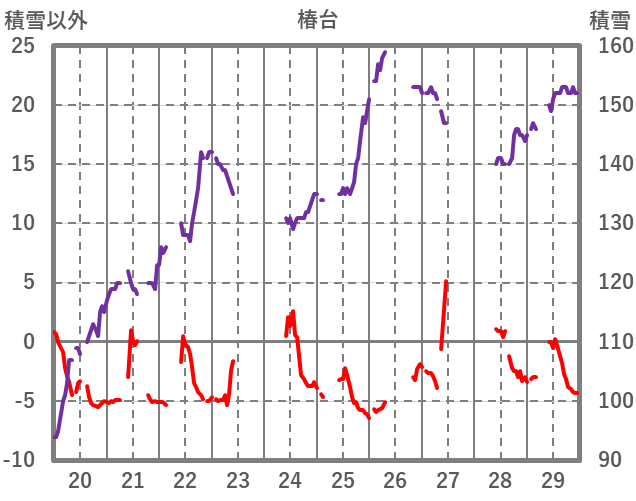 | 日 | 時 | 気温 | 降水 | 風向/風速 | 日照 | 積雪 | 降雪 |