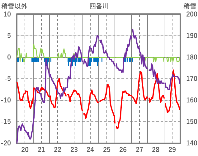 | 日 | 時 | 気温 | 降水 | 風向/風速 | 日照 | 積雪 | 降雪 |