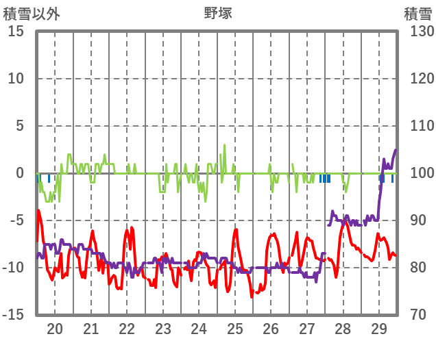 | 日 | 時 | 気温 | 降水 | 風向/風速 | 日照 | 積雪 | 降雪 |