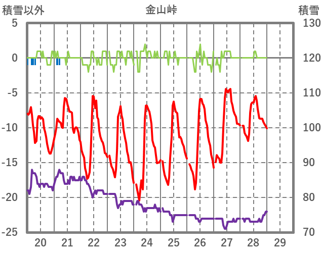 | 日 | 時 | 気温 | 降水 | 風向/風速 | 日照 | 積雪 | 降雪 |
