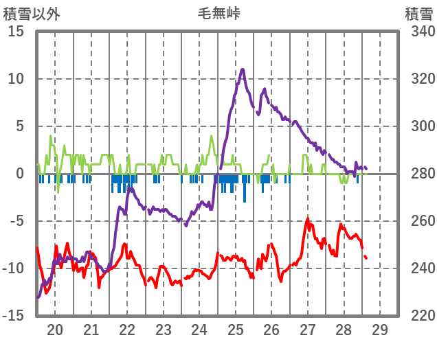 | 日 | 時 | 気温 | 降水 | 風向/風速 | 日照 | 積雪 | 降雪 |