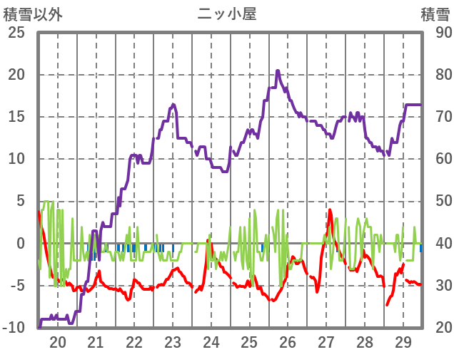 | 日 | 時 | 気温 | 降水 | 風向/風速 | 日照 | 積雪 | 降雪 |