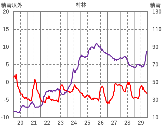 | 日 | 時 | 気温 | 降水 | 風向/風速 | 日照 | 積雪 | 降雪 |