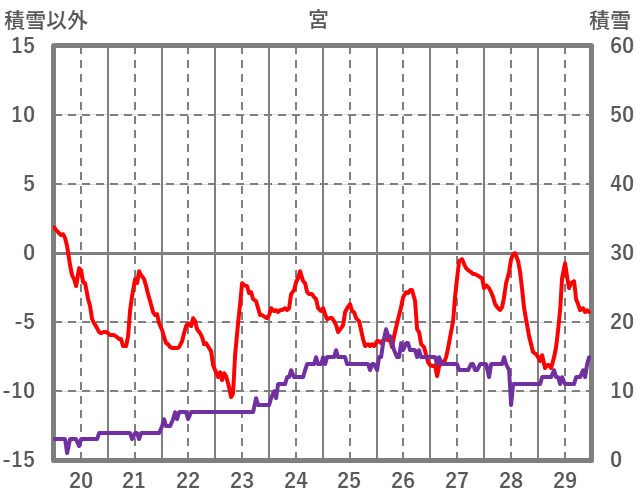 | 日 | 時 | 気温 | 降水 | 風向/風速 | 日照 | 積雪 | 降雪 |