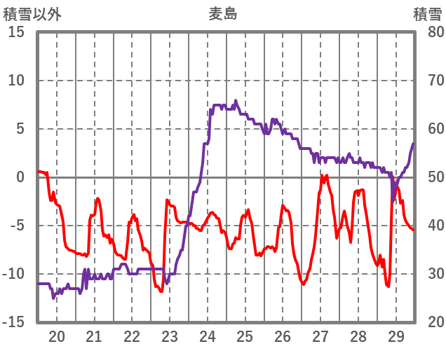 | 日 | 時 | 気温 | 降水 | 風向/風速 | 日照 | 積雪 | 降雪 |