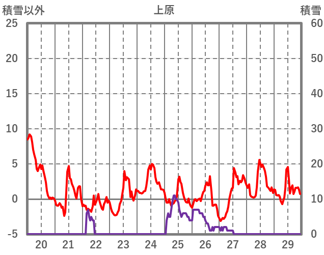 | 日 | 時 | 気温 | 降水 | 風向/風速 | 日照 | 積雪 | 降雪 |