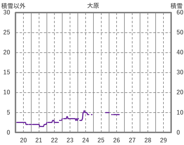 | 日 | 時 | 気温 | 降水 | 風向/風速 | 日照 | 積雪 | 降雪 |