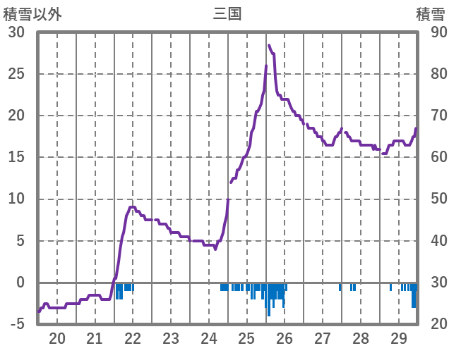 | 日 | 時 | 気温 | 降水 | 風向/風速 | 日照 | 積雪 | 降雪 |