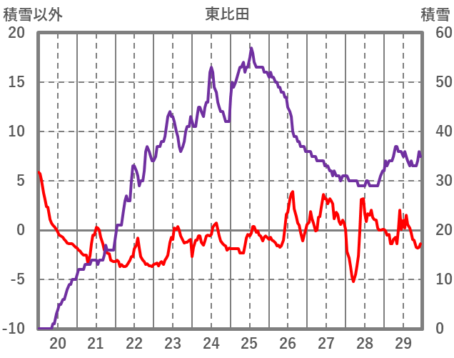 | 日 | 時 | 気温 | 降水 | 風向/風速 | 日照 | 積雪 | 降雪 |