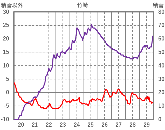 | 日 | 時 | 気温 | 降水 | 風向/風速 | 日照 | 積雪 | 降雪 |