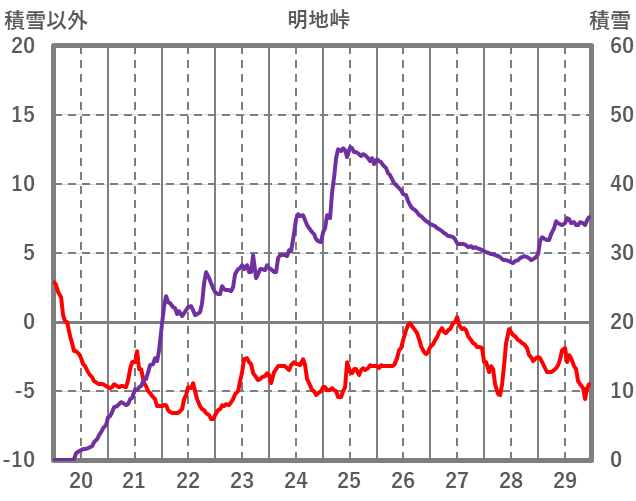 | 日 | 時 | 気温 | 降水 | 風向/風速 | 日照 | 積雪 | 降雪 |