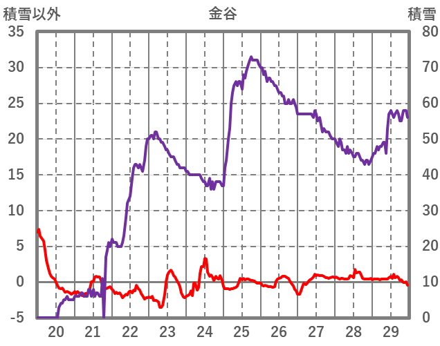 | 日 | 時 | 気温 | 降水 | 風向/風速 | 日照 | 積雪 | 降雪 |