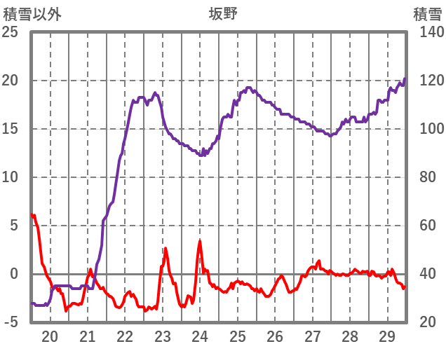 | 日 | 時 | 気温 | 降水 | 風向/風速 | 日照 | 積雪 | 降雪 |