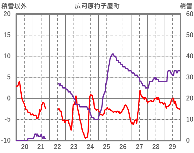 | 日 | 時 | 気温 | 降水 | 風向/風速 | 日照 | 積雪 | 降雪 |