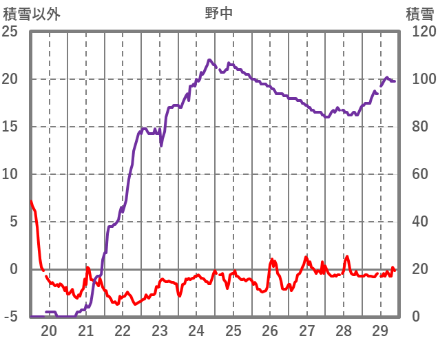 | 日 | 時 | 気温 | 降水 | 風向/風速 | 日照 | 積雪 | 降雪 |