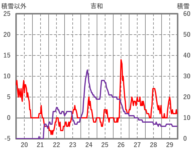 | 日 | 時 | 気温 | 降水 | 風向/風速 | 日照 | 積雪 | 降雪 |