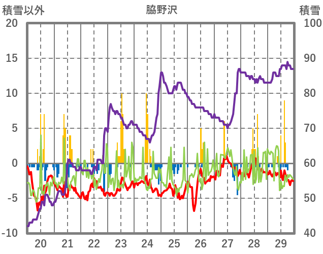 | 日 | 時 | 気温 | 降水 | 風向/風速 | 日照 | 積雪 | 降雪 |