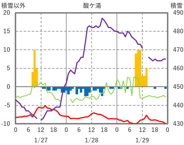 | 日 | 時 | 気温 | 降水 | 風向/風速 | 日照 | 積雪 | 降雪 |