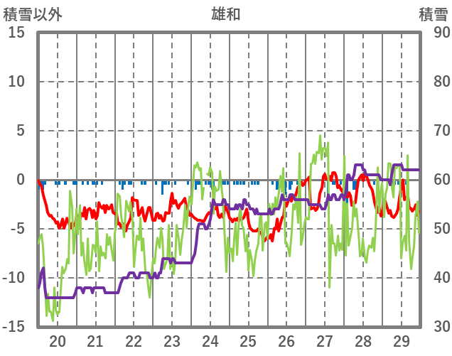| 日 | 時 | 気温 | 降水 | 風向/風速 | 日照 | 積雪 | 降雪 |