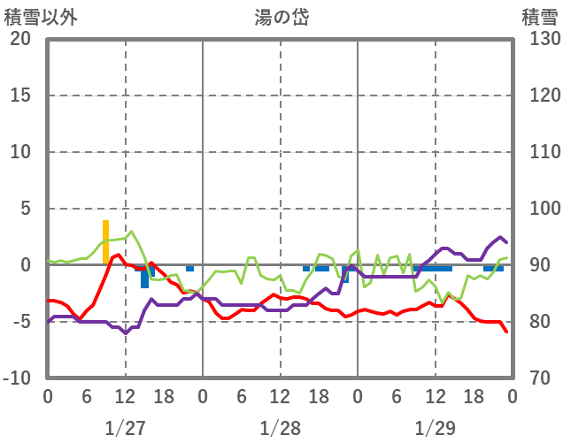 | 日 | 時 | 気温 | 降水 | 風向/風速 | 日照 | 積雪 | 降雪 |