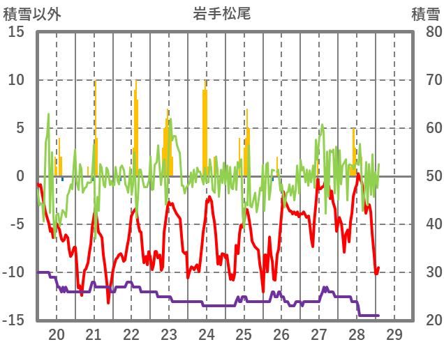 | 日 | 時 | 気温 | 降水 | 風向/風速 | 日照 | 積雪 | 降雪 |