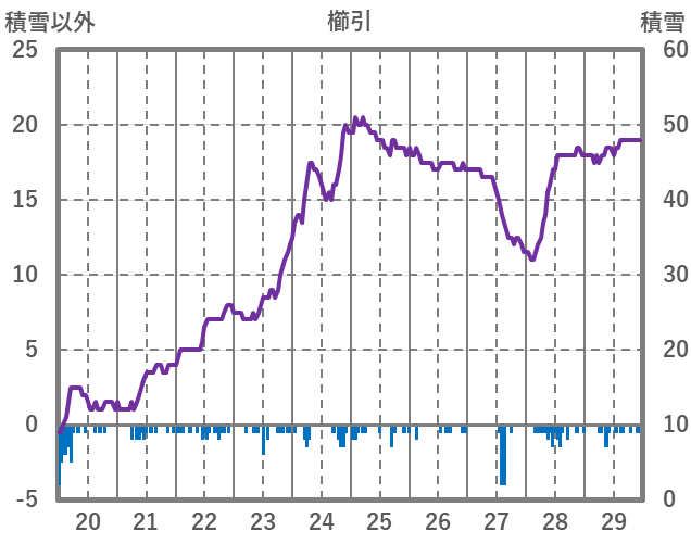 | 日 | 時 | 気温 | 降水 | 風向/風速 | 日照 | 積雪 | 降雪 |