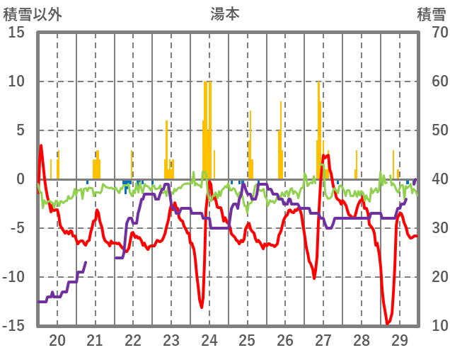 | 日 | 時 | 気温 | 降水 | 風向/風速 | 日照 | 積雪 | 降雪 |