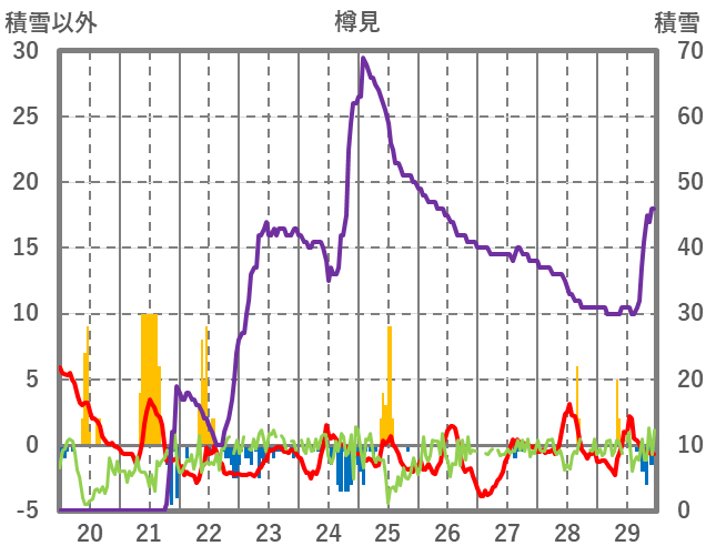 | 日 | 時 | 気温 | 降水 | 風向/風速 | 日照 | 積雪 | 降雪 |