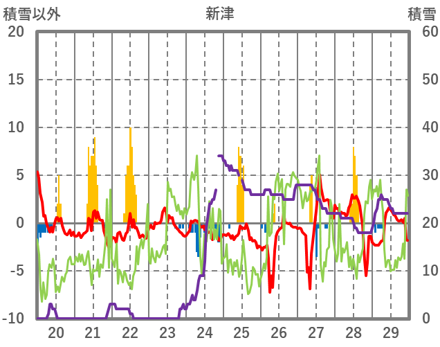 | 日 | 時 | 気温 | 降水 | 風向/風速 | 日照 | 積雪 | 降雪 |