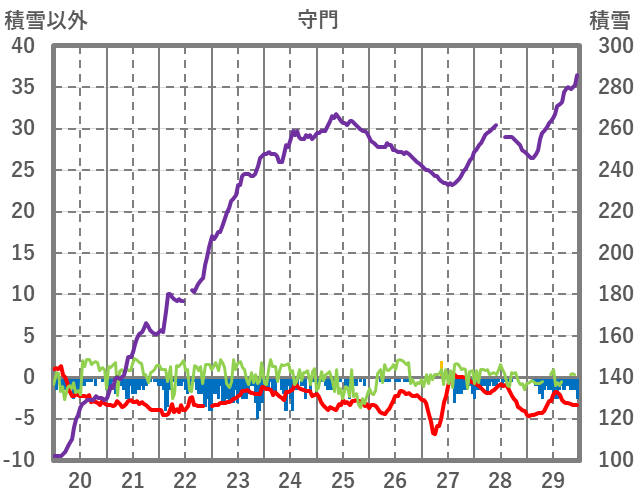 | 日 | 時 | 気温 | 降水 | 風向/風速 | 日照 | 積雪 | 降雪 |