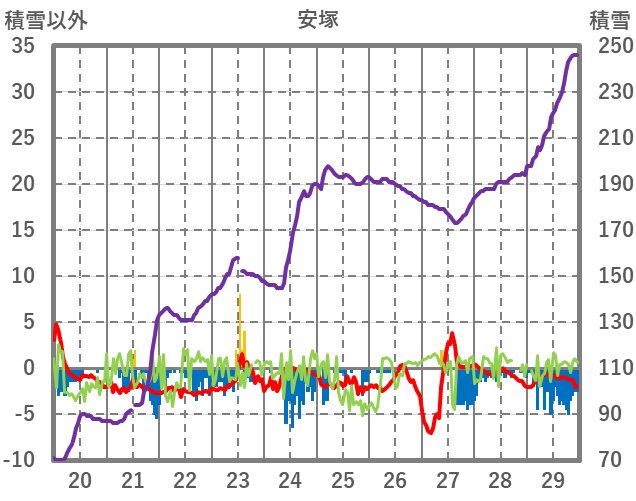 | 日 | 時 | 気温 | 降水 | 風向/風速 | 日照 | 積雪 | 降雪 |