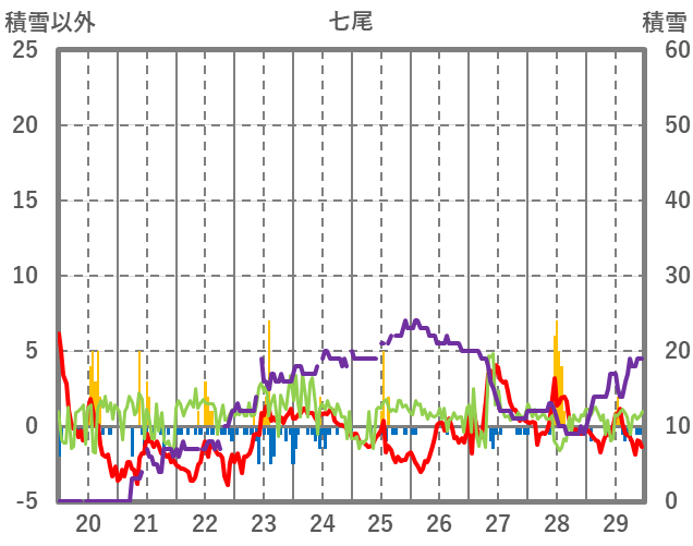 | 日 | 時 | 気温 | 降水 | 風向/風速 | 日照 | 積雪 | 降雪 |