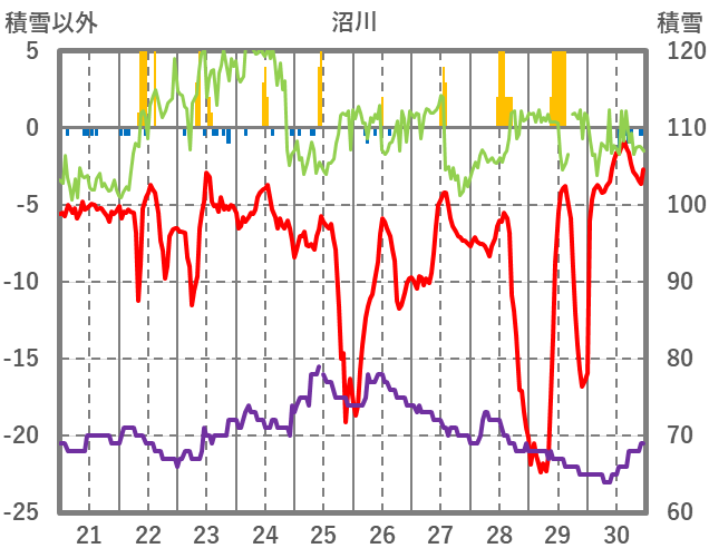 | 日 | 時 | 気温 | 降水 | 風向/風速 | 日照 | 積雪 | 降雪 |